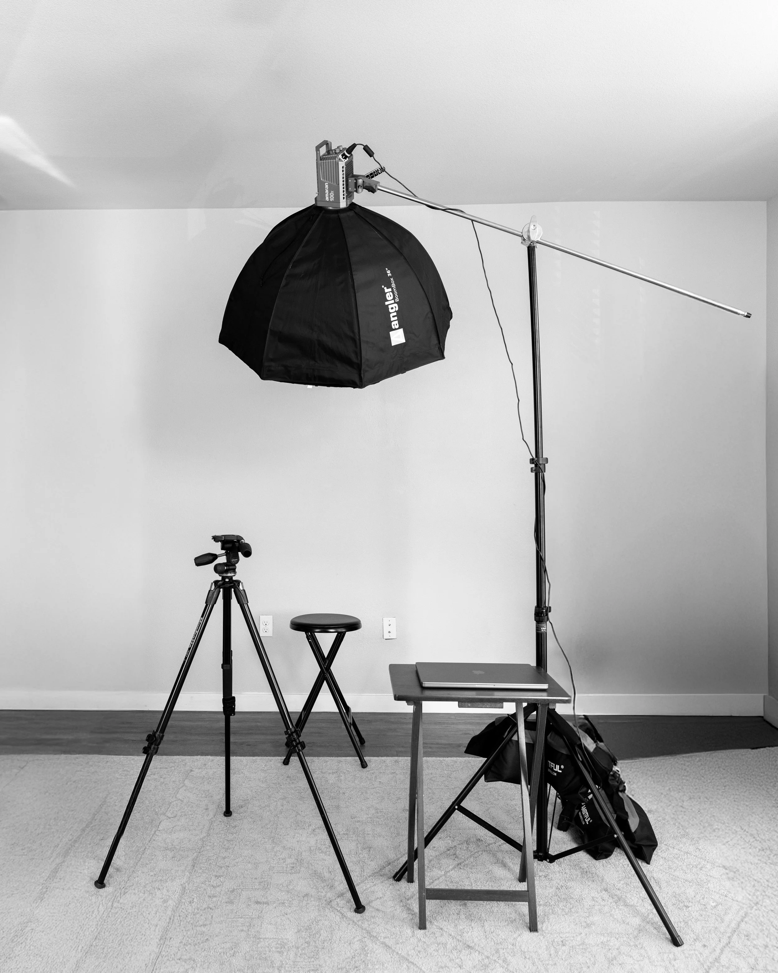 This is how small the lighting setup will look. Perfect for most sized studios.